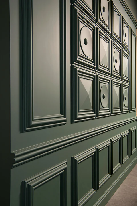 - Moulure cimaise murale : délimite un pan de mur ou structure un soubassement.